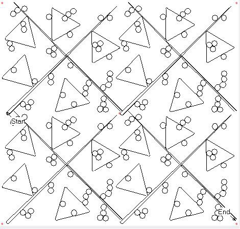 Pool Table e2e for longarm quilting. Picture shows two repeats per row with two rows. Vertical spacing is -.40 inches. Actual width is 12.0 inches and actual height is 11.2 inches. Downloadable file offered in qli or iqp format.